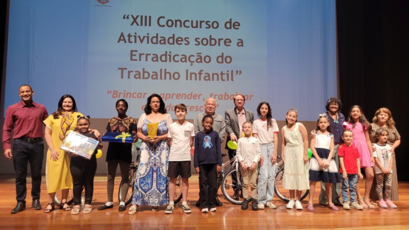 O Teatro Nair Bello recebeu na noite desta quinta-feira (30) a cerimônia de premiação do 13º Concurso sobre Erradicação do Trabalho Infantil. A iniciativa é da Prefeitura de Limeira, por meio da Secretaria de Educação. Participaram das atividades quase 16 mil alunos, de 82 escolas da Rede Municipal de Ensino. Foram 5 categorias: desenho temático, verbete de curiosidade, poema, conto e carta de opinião. Os primeiros colocados em cada categoria recebem uma bicicleta. Já a premiação para a segunda e terceira classificação são jogos educativos.